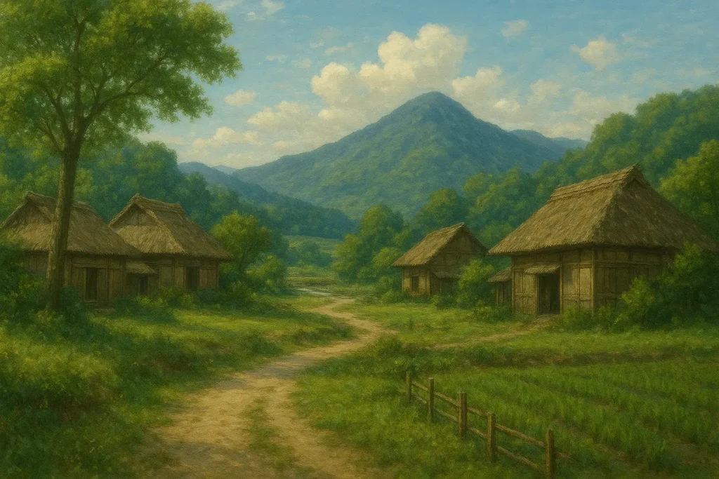 Pada zaman dahulu kala, di sebuah desa kecil di Jepang yang dikelilingi pegunungan dan sungai yang jernih, hiduplah sepasang suami istri yang sudah lanjut usia. Mereka hidup sederhana di sebuah rumah kayu kecil yang dikelilingi kebun sayur dan bunga. Setiap pagi, sang kakek pergi ke hutan untuk mengumpulkan kayu bakar, sementara sang nenek pergi ke sungai untuk mencuci pakaian.