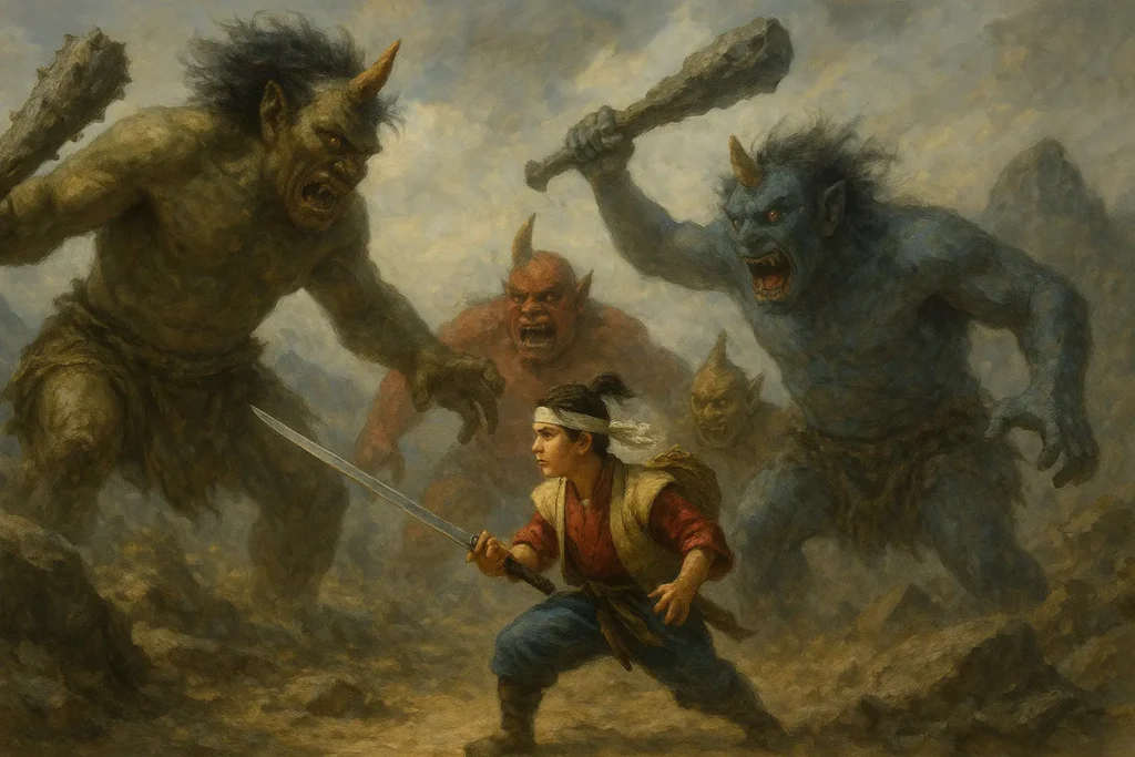 Para Oni terkejut. Mereka tidak menyangka ada manusia yang berani datang menyerang markas mereka. Beberapa Oni mencoba melawan dengan gada besar, tetapi Momotarō dan teman-temannya bergerak lebih cepat.