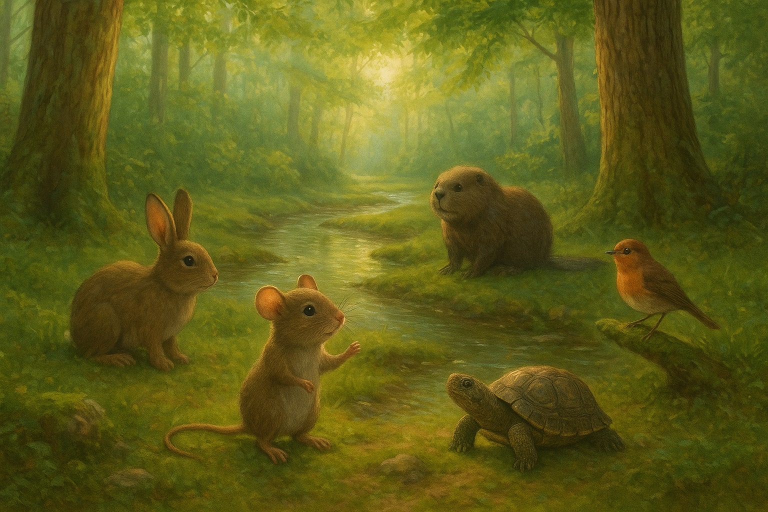 Setiap pagi terdengar nyanyian burung, langkah kelinci yang berlari, dan tawa para hewan yang sibuk dengan kegiatan kecilnya.